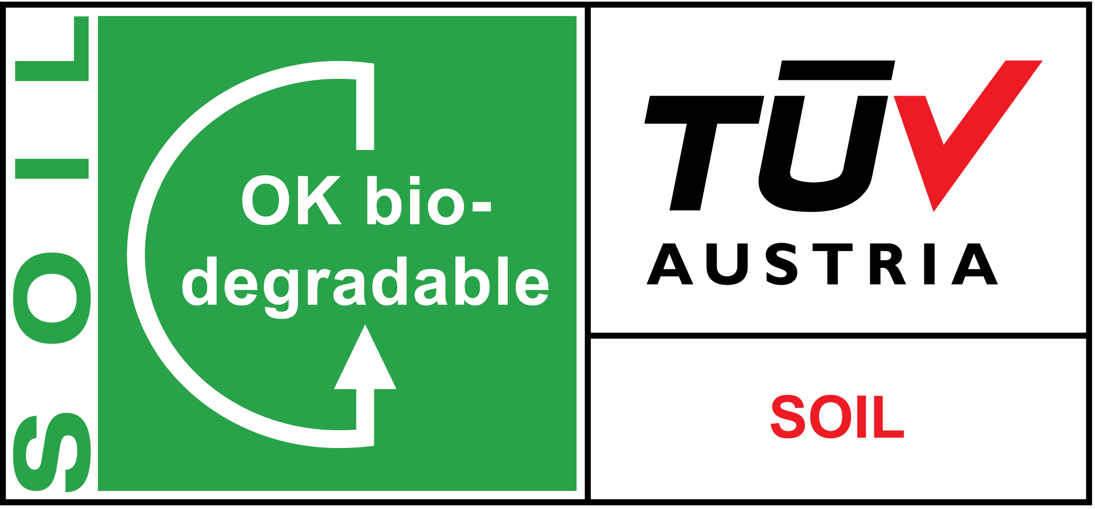Le label garantit que le produit est biodégradable à 90% dans le sol. Le label est géré et contrôlé par TUV AUSTRIA Belgium.
